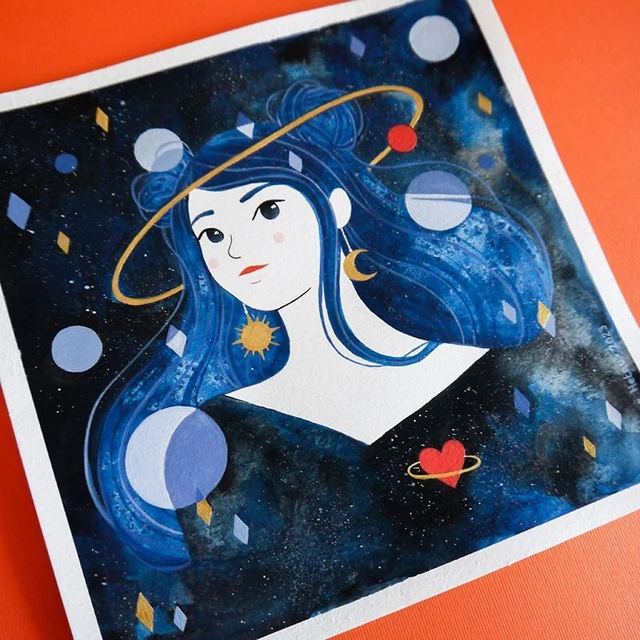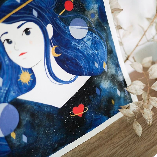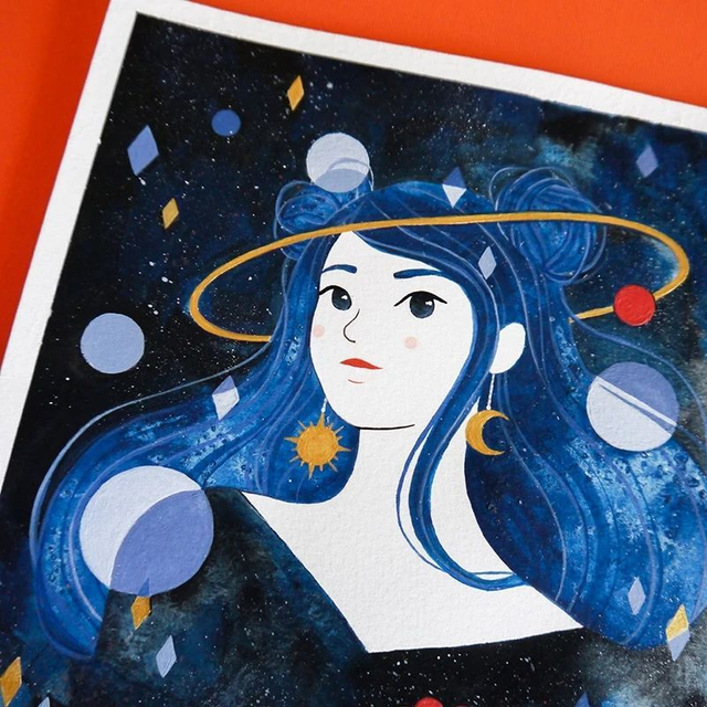 Illustration originale unique, réalisée à l'aquarelle, gouache et doré sur papier épais sans acide.