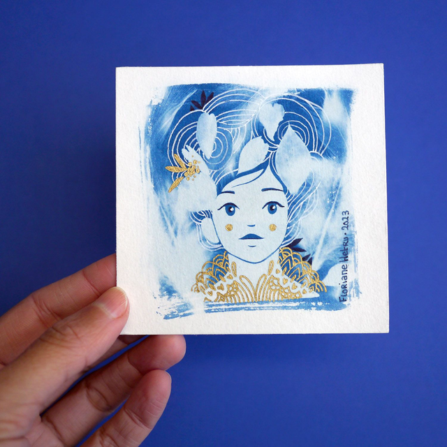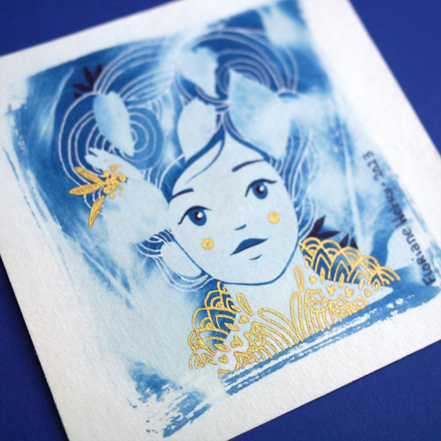 Cyanotype illustré original, agrémenté de dorures ✨ chaque pièce est unique !
