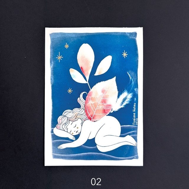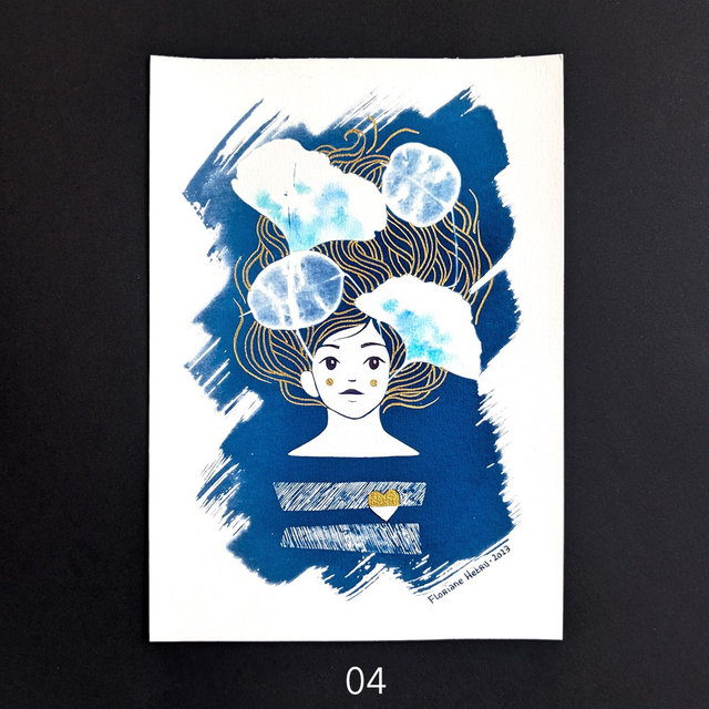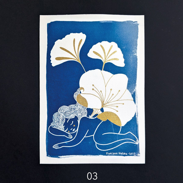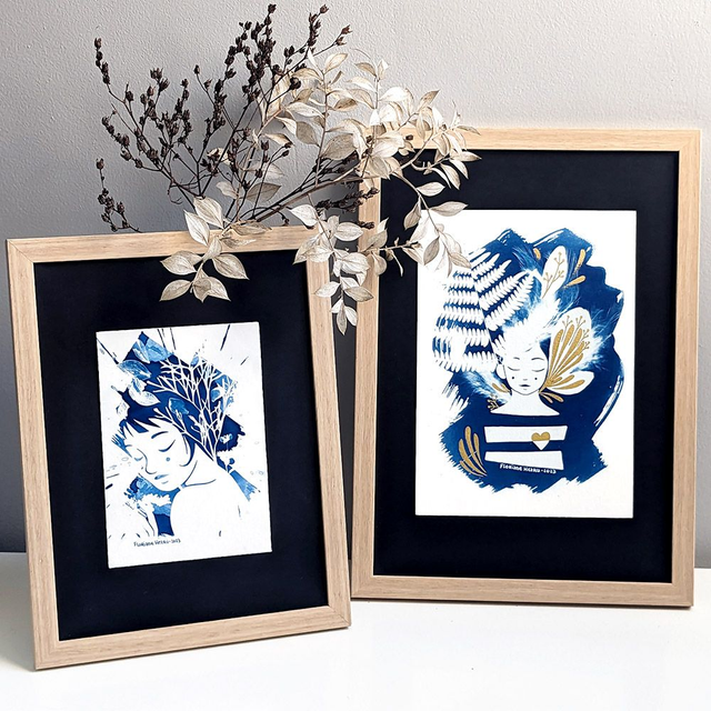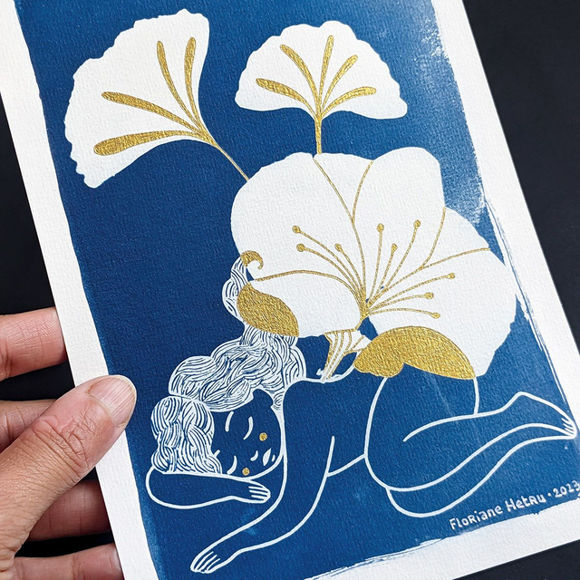 Cyanotypes illustrés originaux, agrémentés d'aquarelle et / ou de dorures ✨ chaque pièce est unique !
