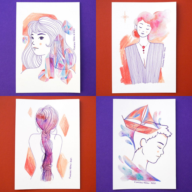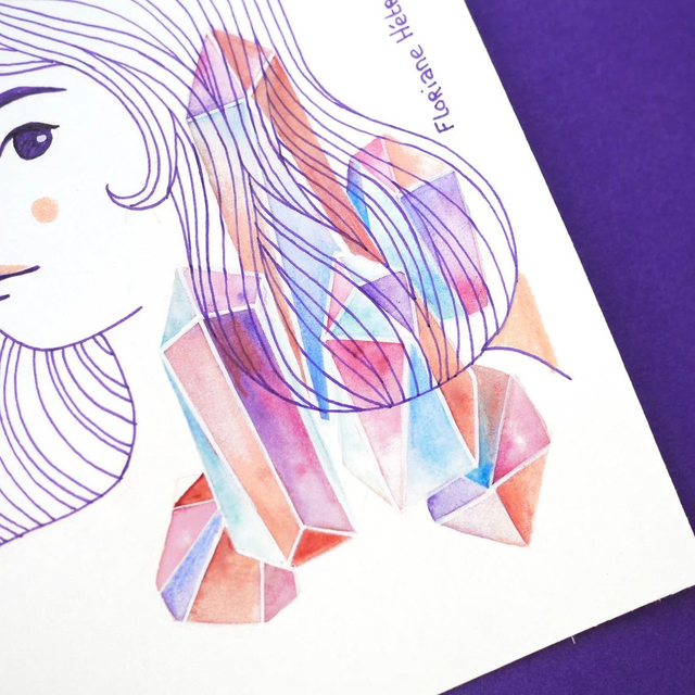 • Aquarelle, encre et crayons sur papier aquarelle sans acide 200 g/m²
