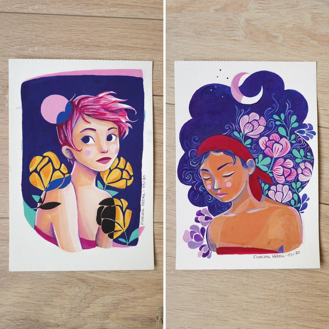 Petites peintures originales réalisées à la gouache sur papier aquarelle sans acide 300 g/m².