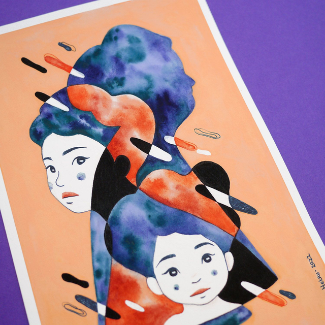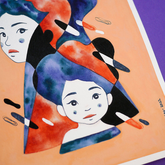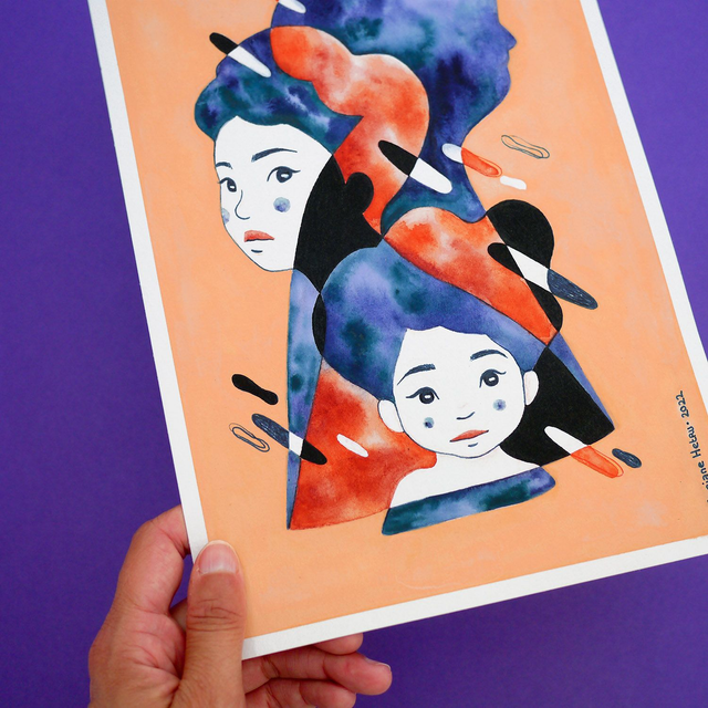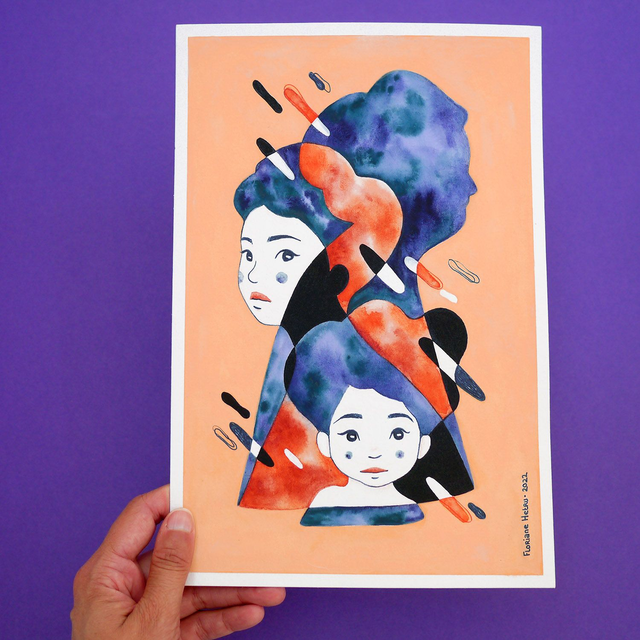 Délicate aquarelle, feutre alcool, encre et gouache sur papier Hahnemühle sans acide 325 g/m².