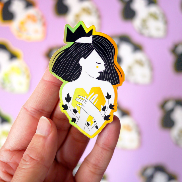 Reine : effet holographique / doré sur le contour et le coeur