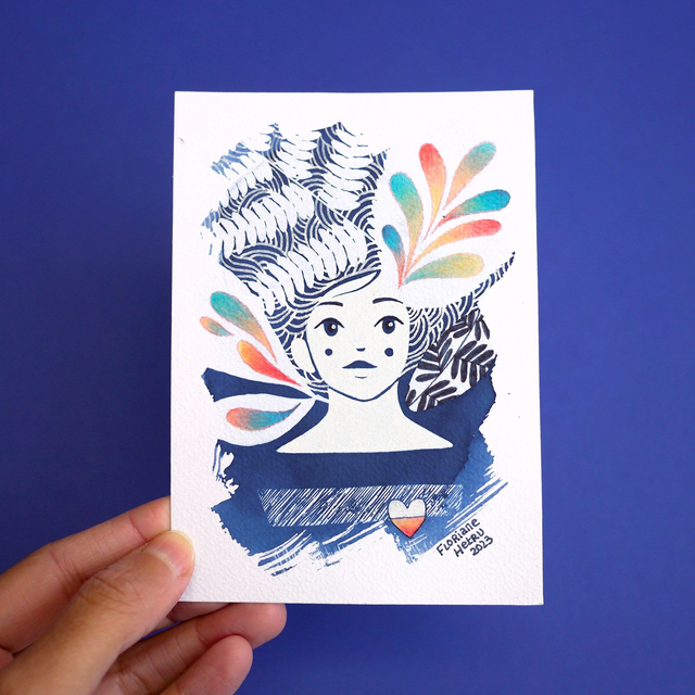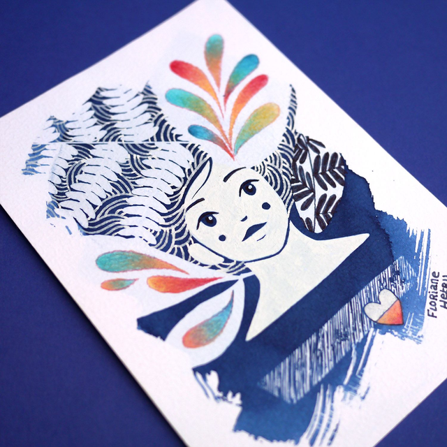Cyanotype illustré original, agrémenté de crayon aux couleurs pétantes ✨ chaque pièce est unique !